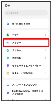 バッテリーの使用状況を確認したり、バッテリーの消費を軽減する設定ができます。