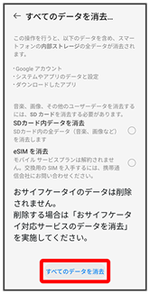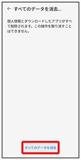 - 本機にSDカードを取り付けているとき、SDカードのデータも消去する場合は、SDカード内データを消去をタップしてください(