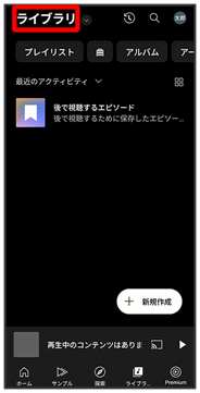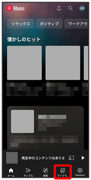 あらかじめ、Google アカウントでログインし、YT Music画面で右上のアカウントアイコンをタップ