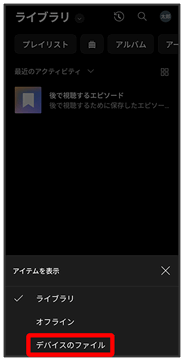 一時保存とストレージをタップしてデバイスのファイルを表示を有効(