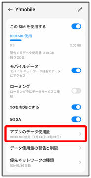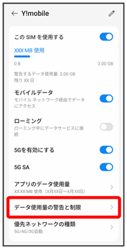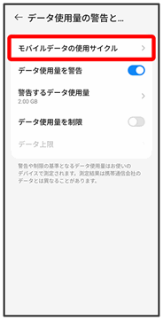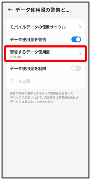 モバイルデータ通信の使用量を確認したり、使用を制限することができます。