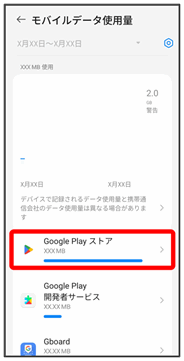 アプリのデータ使用量を確認できます。