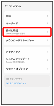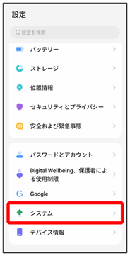 言語、キーボード、日付と時刻、バックアップ、リセット、システム アップデートなど、システムに関して確認や設定ができます。