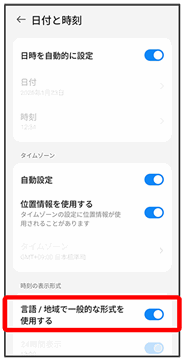 言語の設定に従って24時間表示/12時間表示が自動設定されます。
