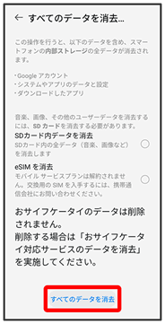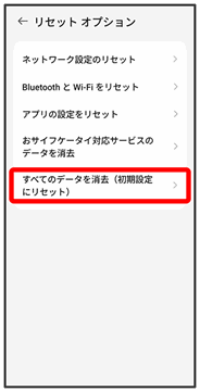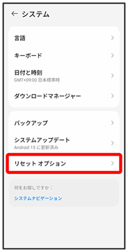| リセット オプション | ネットワーク設定のリセットやアプリの設定のリセットなど本機を初期状態にリセットができます。 |