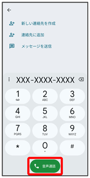 • ↓ダイヤルキーをタップして相手の電話番号を入力