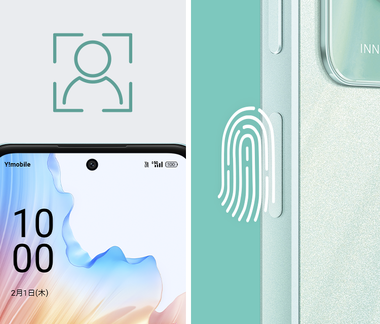マスクをしたままでも瞬時にロック解除ができる顔認証機能を搭載。指紋認証機能と便利に使い分けできます。