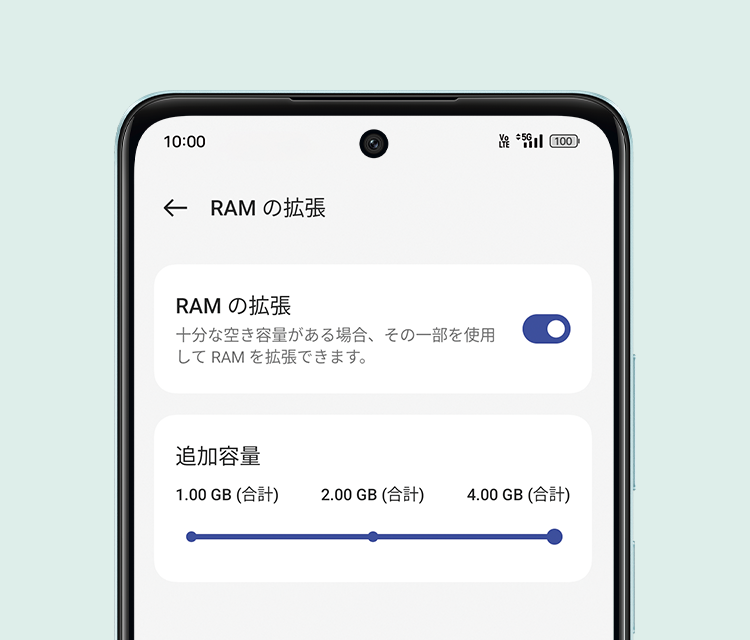 最大8GB相当までRAM拡張可能*2な4GBメモリは、毎日のスマホ操作もスムーズに行えます。