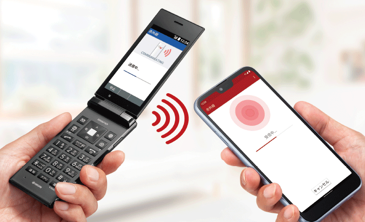 対応機種どうしで、電話番号などのデータをワイヤレスで交換できる