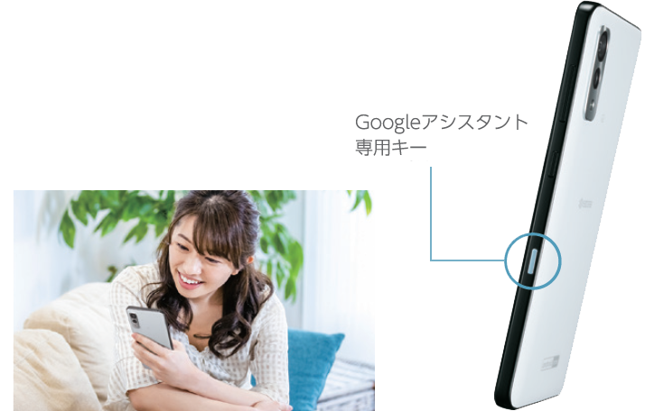 本体側面の専用キーを押すだけで、Googleアシスタントが起動。知りたいことを声で素早く検索できます。