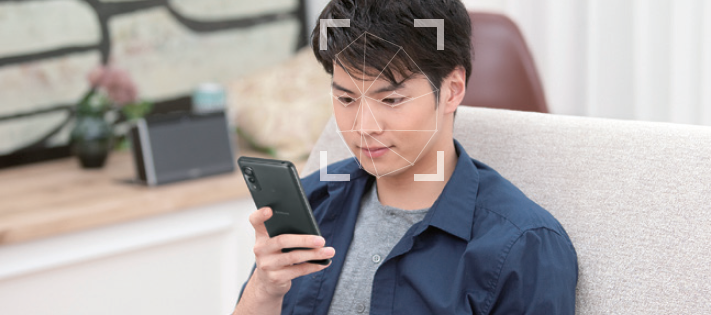 フロント(イン)カメラでAIによる生体認識を行い、写真や動画を使ったなりすましをブロックします。