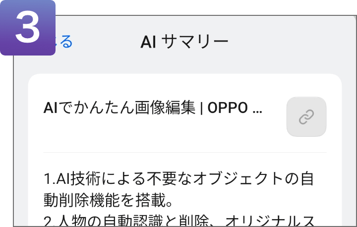 「AIサマリー」をタップするとサイトの内容を瞬時に要約して表示