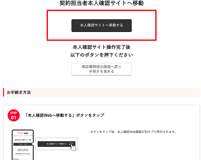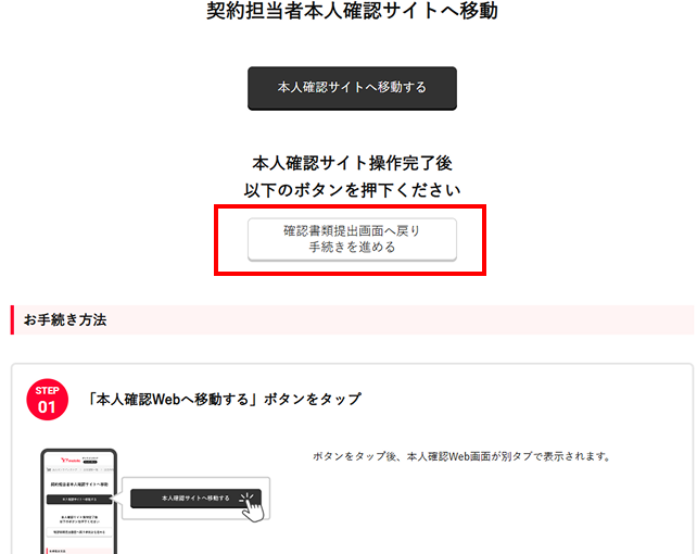 - Step1ですべての必要書類のアップロードが完了したら、必ずSTEP2確認書類の提出を行ってください。確認書類の提出完了後、ワイモバイル法人オンラインストア窓口でお申し込み情報を確認いたします。