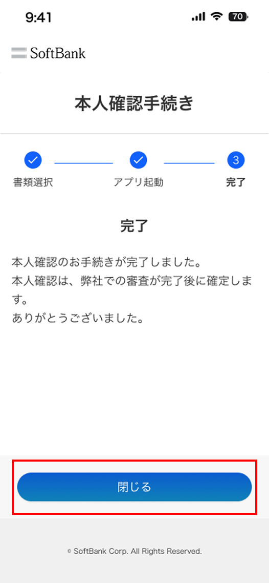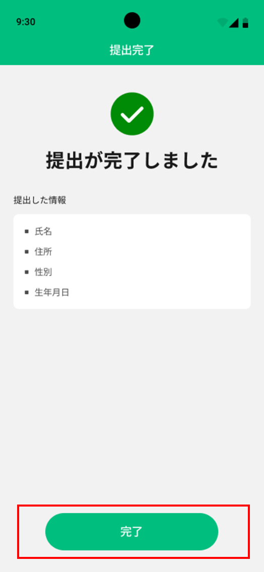 該当書類のICチップ読み取りまたはアップロードが完了した状態です。