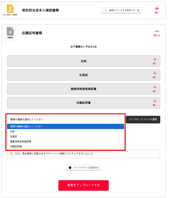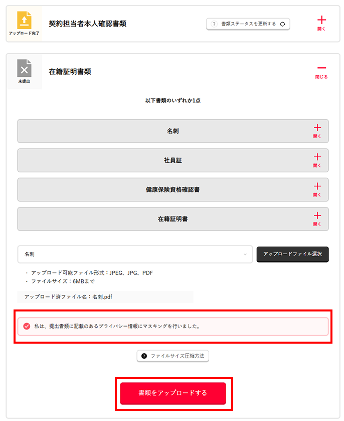 契約担当者本人確認書類のアップロード方法
