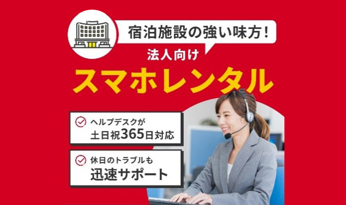 宿泊宿泊施設に法人スマホを導入しませんか?広い館内でスタッフ間の連絡がとれやすくなり、スムーズなオペレーションが可能に。高品質な通信でストレスなし、長時間営業も安心の長持ちバッテリー。端末レンタルサービスなら手厚いサポートも。