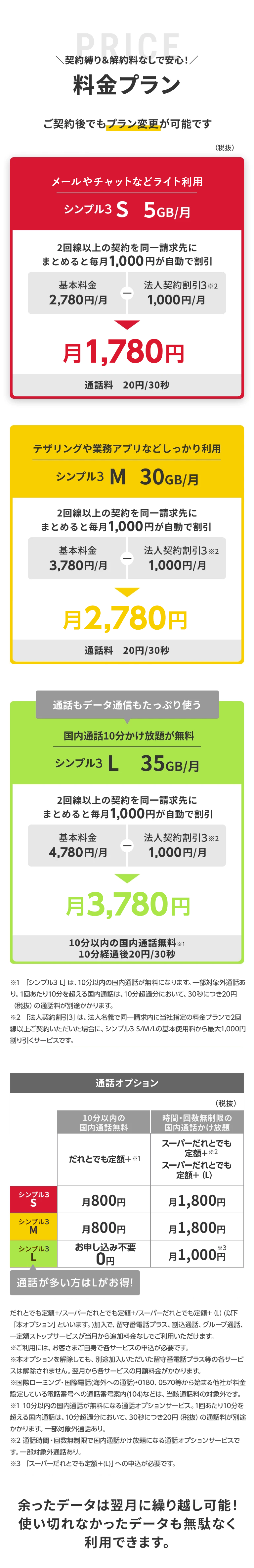- シンプル3またはシンプル2にご加入の場合、シンプルプラン向けのだれとでも定額/スーパーだれとでも定額(S)は解除となります。