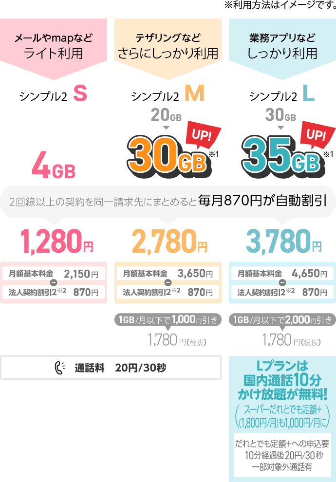 データ通信も通話もリーズナブル 2回線以上で毎月ずーっと自動割引