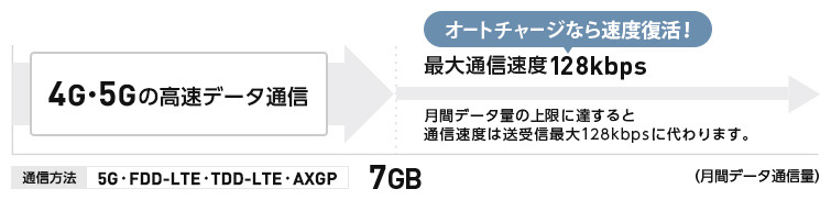 月間データ容量を超過しても、自動的にデータ容量が追加され、高速データ通信を維持したままご利用いただけます。
