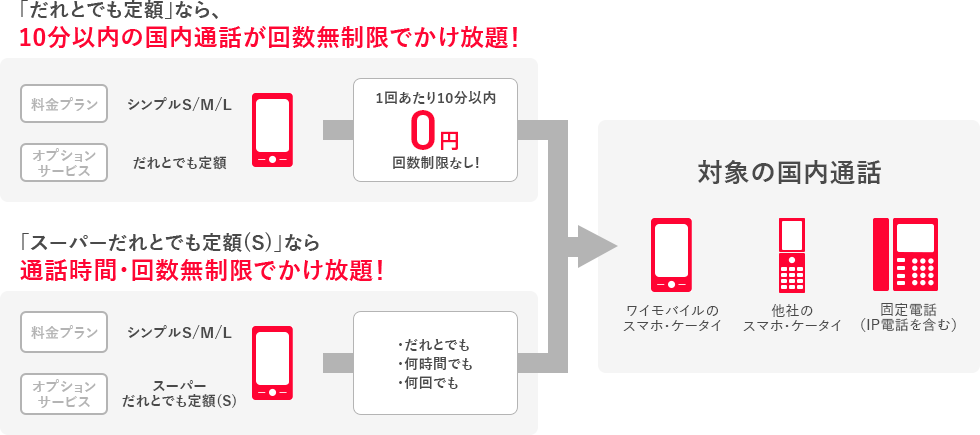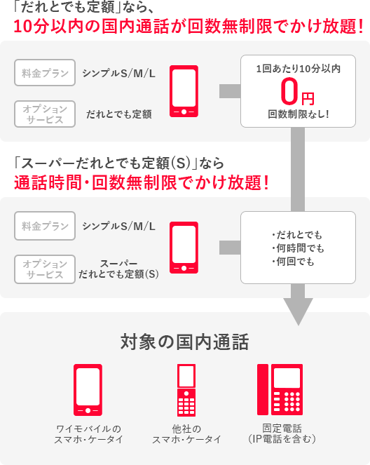 「1回10分以内の国内通話無料」と「国内通話かけ放題」の通話定額をご用意しております。