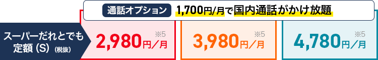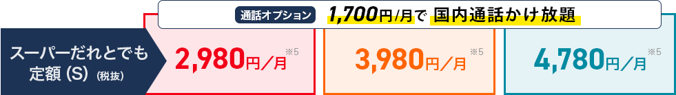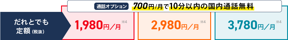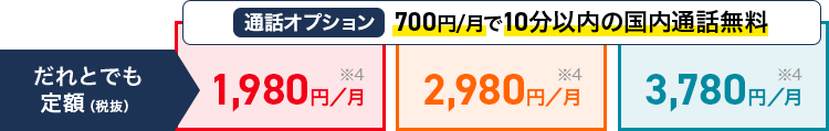 | 基本料金 | 2,780円 | 3,780円 | 4,780円 |