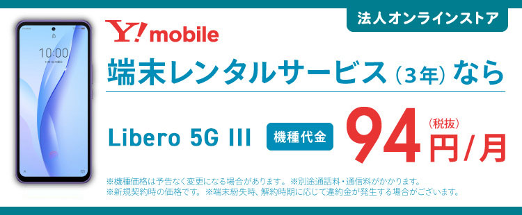 「端末レンタルサービス」は、ワイモバイルが提供する端末を法人契約いただく際に、「3年間のレンタル」にてご提供するサービスです。