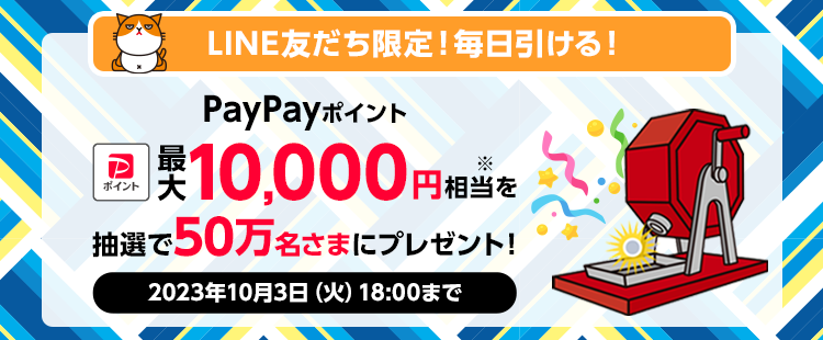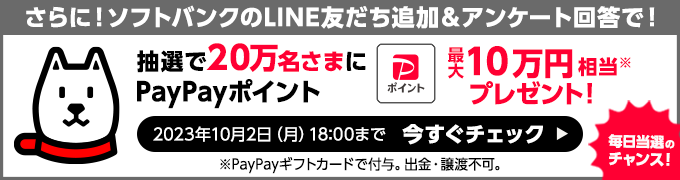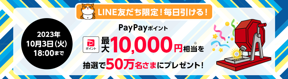 今回のワイモバイルLINEキャンペーンは「PayPayポイント 最大10,000円相当※」が抽選で50万名さまに当たる!