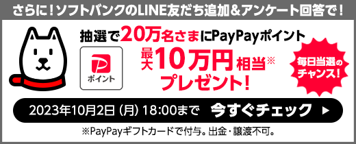 - ・ PayPayポイントはPayPayギフトカードで付与されます。出金と譲渡はできません。PayPay/PayPayカード公式ストアでも利用可能です。