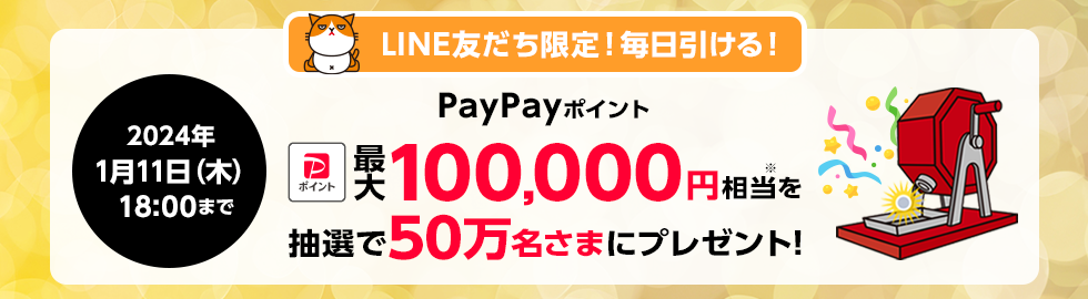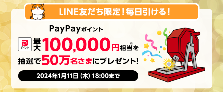 今回のワイモバイルLINEキャンペーンは「PayPayポイント 最大100,000円相当※」が抽選で50万名さまに当たる!