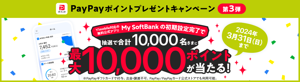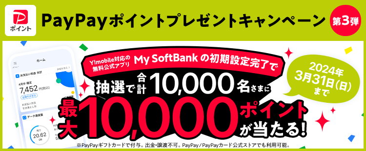 期間中に初めてMy SoftBankアプリの初期設定を完了した方を対象に抽選でPayPayポイントをプレゼントします