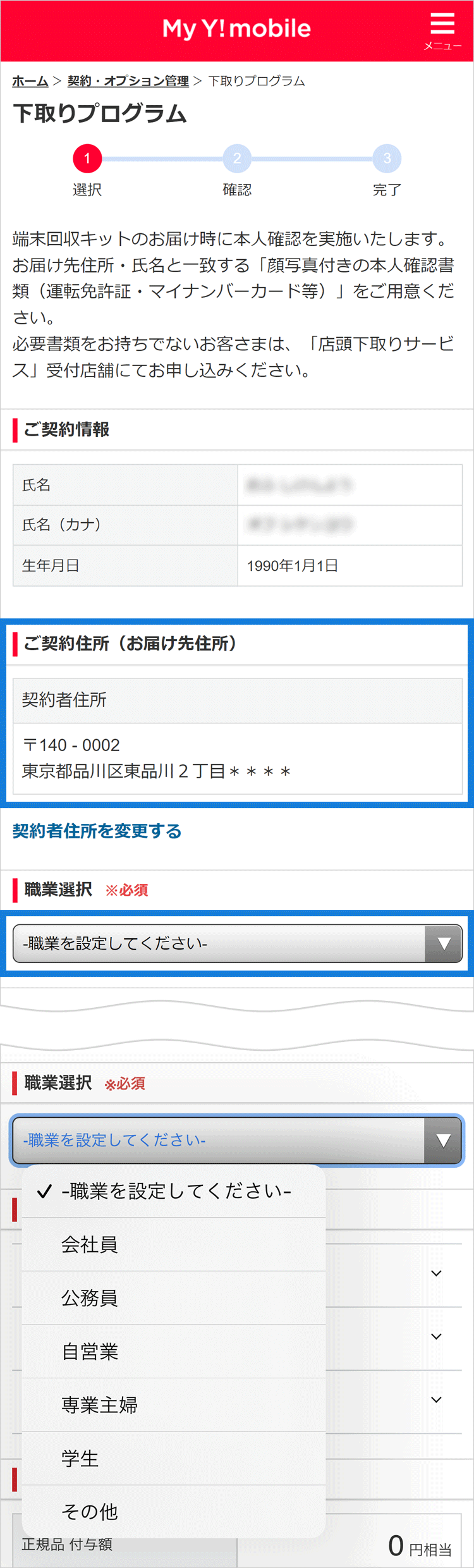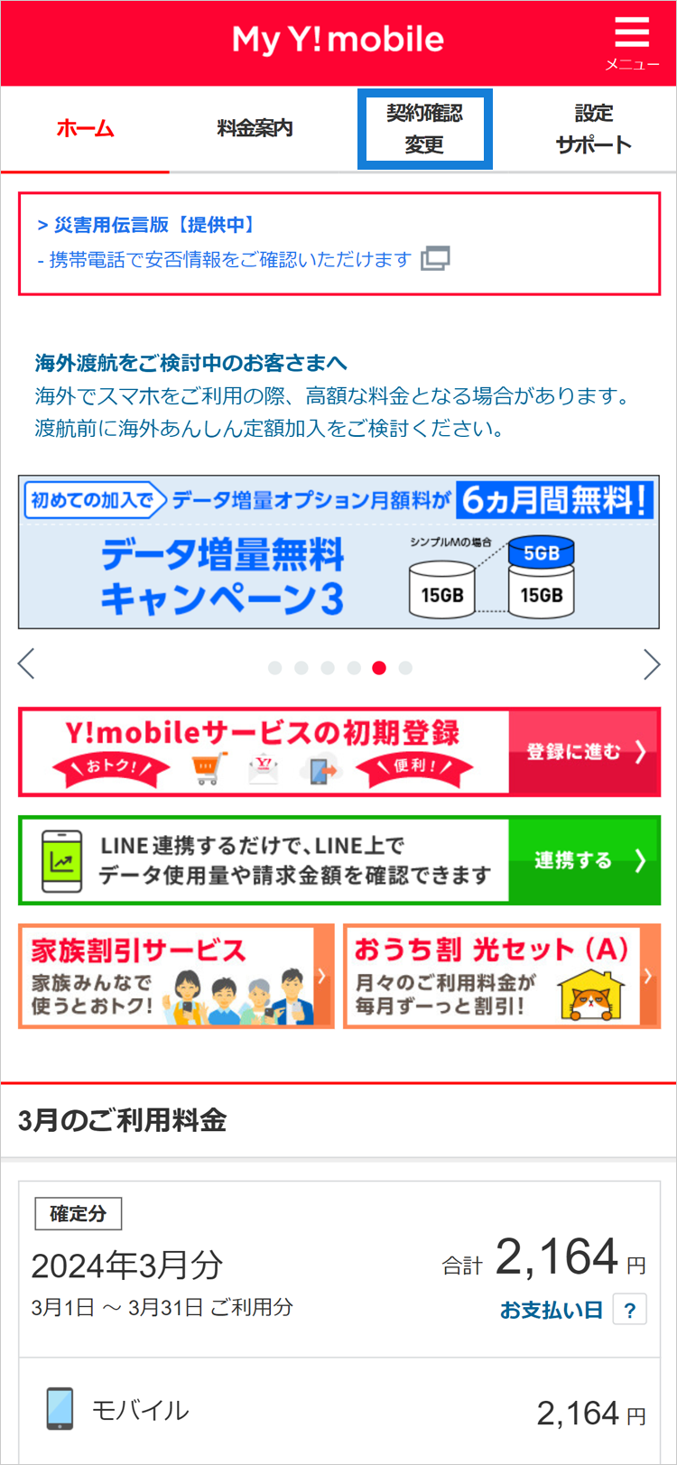 My Y!mobileでのお申し込み状況のご確認はこちら