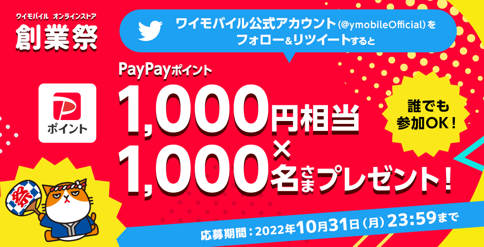- ワイモバイル公式Twitterアカウント(@ymobileOfficial)をフォローする