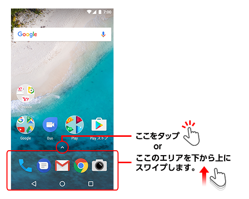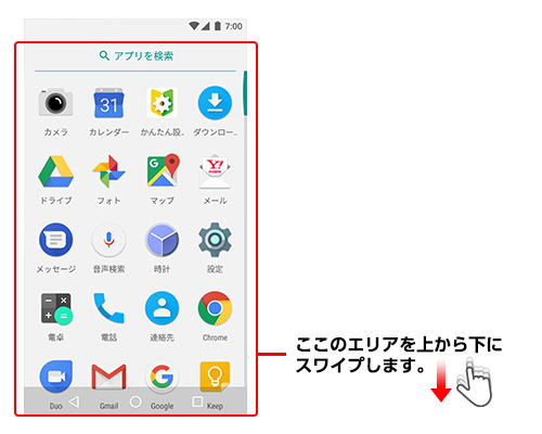 ホーム画面に戻る場合は、画面を上から下にスワイプします。