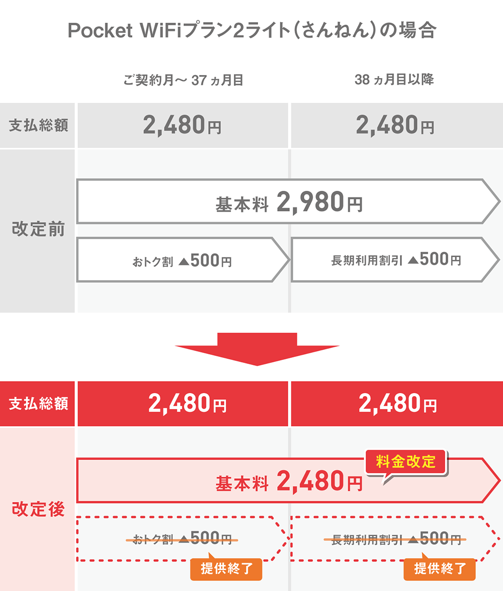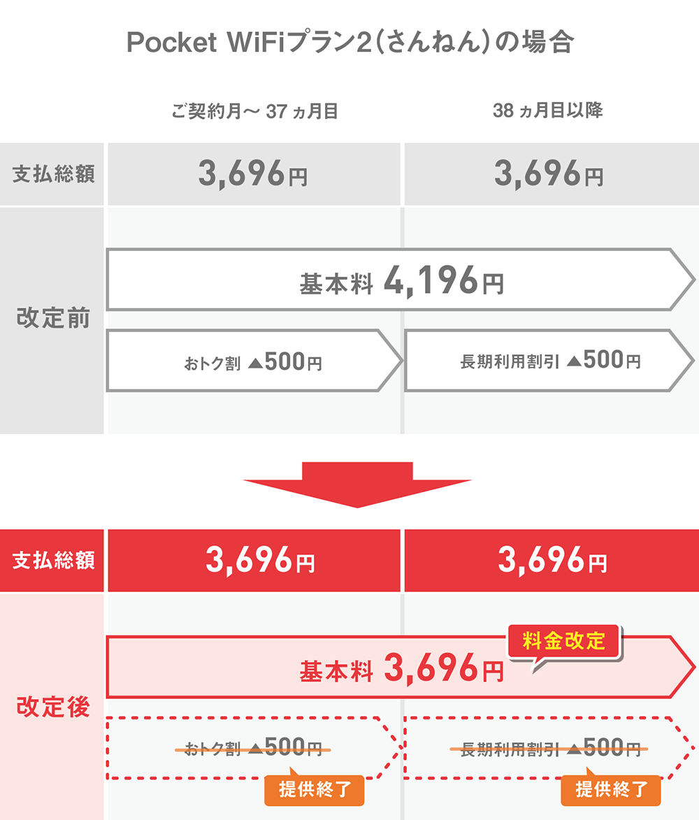 割引提供終了による、お客さまのお支払総額には変更ございません。