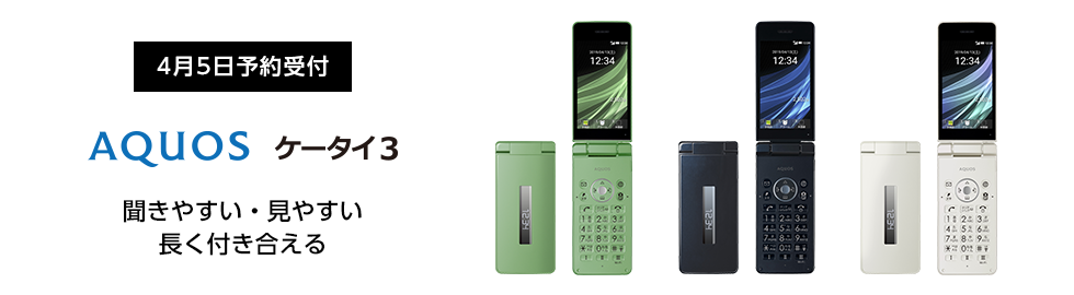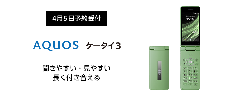 2019年4月5日(金)より、大型レシーバーの搭載や画面を見やすくする「はっきりビュー」対応などで快適に電話やメールができるケータイ「AQUOS ケータイ3」の予約を開始します。