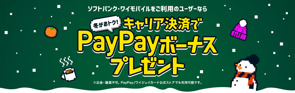 期間中に「ワイモバイルまとめて支払い」を初めてご利用の方には、ご利用金額の10%分(最大10,000円相当)のPayPayボーナスをプレゼント!※1