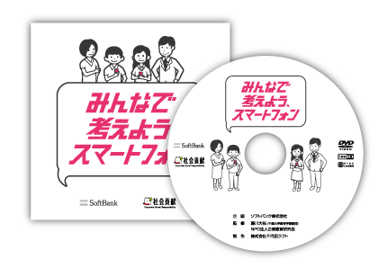 映像教材DVDと指導案冊子から成る情報モラル学習教材※「みんなで考えよう、スマートフォン」を学校関係者やPTA、地域の団体などを対象に無償で提供しています。