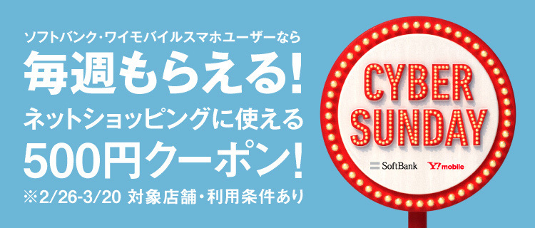 ソフトバンク・ワイモバイルのスマートフォンをご利用中のお客さまへ、2022年2月26日(土)から2022年3月20日(日)までの週末に「CYBER SUNDAY」を開催いたします。※1
