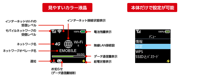 | 最大通信速度(「4G」の場合)*4 | FDD-LTE:下り最大75Mbps / 上り最大25Mbps AXGP:下り最大110Mbps / 上り最大10Mbps |
