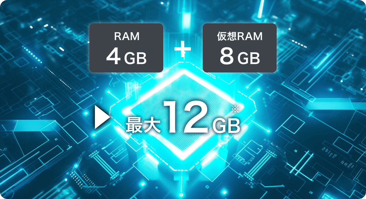 4GBのRAMに、RAM容量を最大12GBまで拡張できるRAMブーストを搭載。