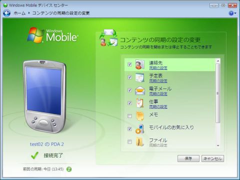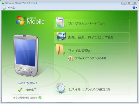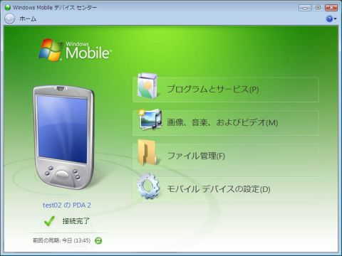 ※Windows Mobile デバイスセンターの詳しい操作は、Windows Mobile デバイスセンターのヘルプをご覧ください。