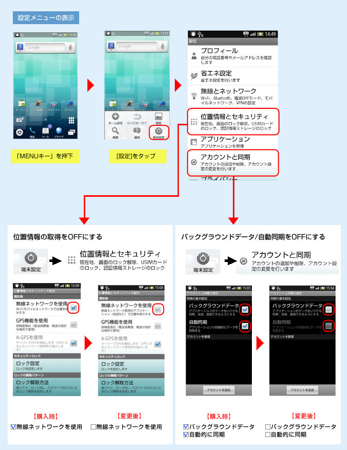 ■設定方法の例 (GALAPAGOS 005SH の場合)