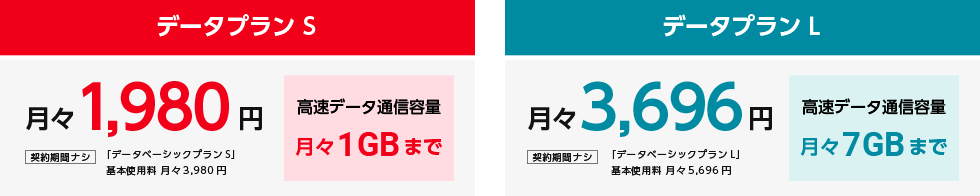 「データプラン」は、4G高速通信に対応し、タブレットをご利用いただく場合におすすめのデータ通信専用プランです。