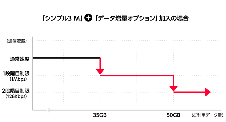 2段階目制限開始時の ご利用データ量/通信速度 |
