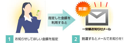 ご利用金額が、一定金額に到達した場合におしらせメールを受け取ることができます。