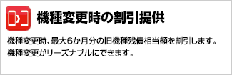 機種変更時、最大6ヵ月分の旧機種残債相当額を割引します。機種変更がリーズナブルにできます。