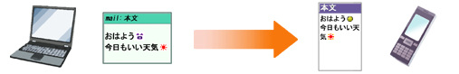 他事業者へ絵文字を送信する場合の絵文字変換表をご参照ください。