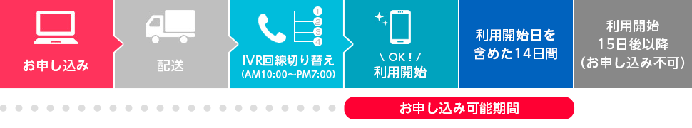 オンラインストアでご購入のお客さまに限り、ご利用を開始した日またはご契約日の10日後のいずれか早い方の当日を含む14日間まで、お申し込みを受け付けております。