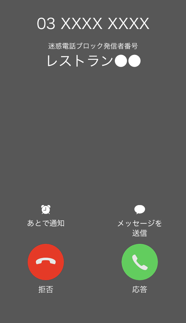拒否リストに登録した個別の電話番号からの着信時に警告画面を表示します。