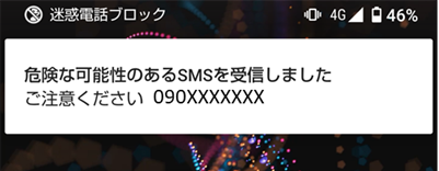 SMSで迷惑メールが届いた場合に通知を表示します。